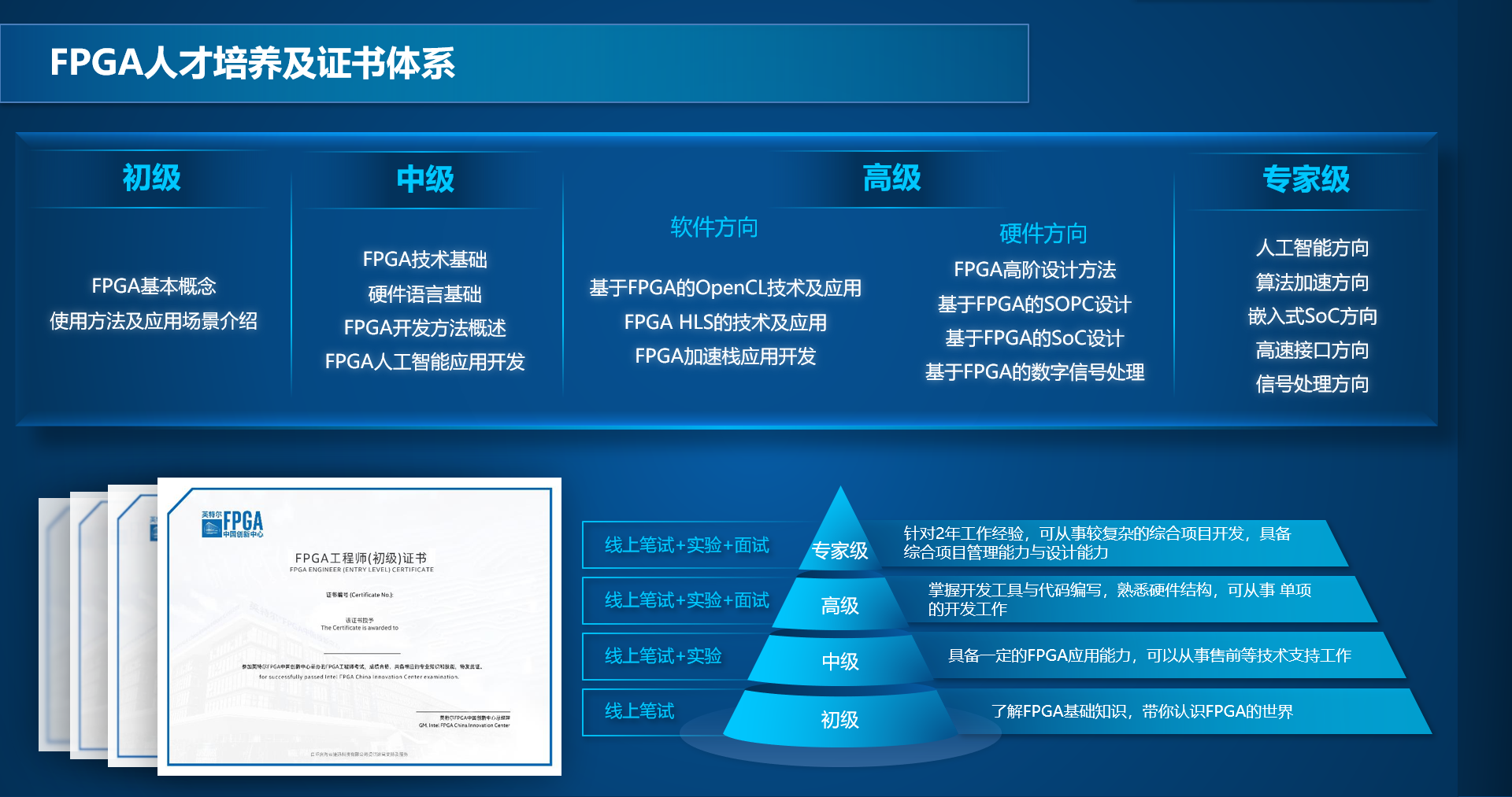 英特尔FPGA中国创新中心资深讲师徐栋玲,从4个方面为3044永利集团的同学展开讲解,分别是“芯时代与FPGA”、“如何学习FPGA技术”、“FPGA人才发展现状”、“英特尔FPGA中国创新中心”。徐老师从时代背景出发,为员工介绍了FPGA技术在各个领域的应用;又从技术角度出发,为员工深入讲解了如何学习FPGA技术;然后从国内FPGA人才发展现状入手,为员工分析了FPGA与人工智能方向的就业前景;最后,徐老师介绍了英特尔FPGA中国创新中心,使员工了解到创新中心的职能和FPGA人才培养体系。