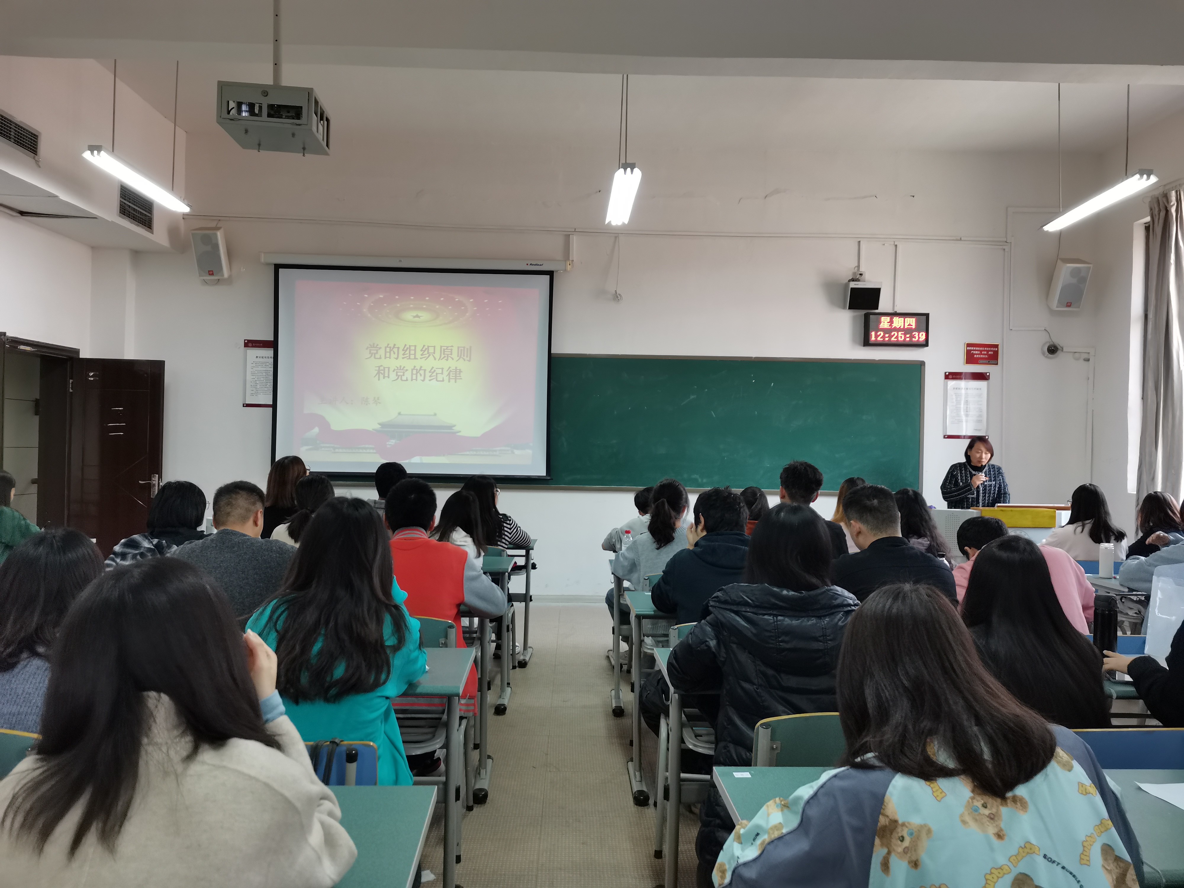 11月19日中午,信息公司党委纪检委员陈琴在志学楼414为3044永利集团入党积极分子培训班的学员们上党课,陈琴以“党的组织原则和党的纪律”为题作了精彩讲授。