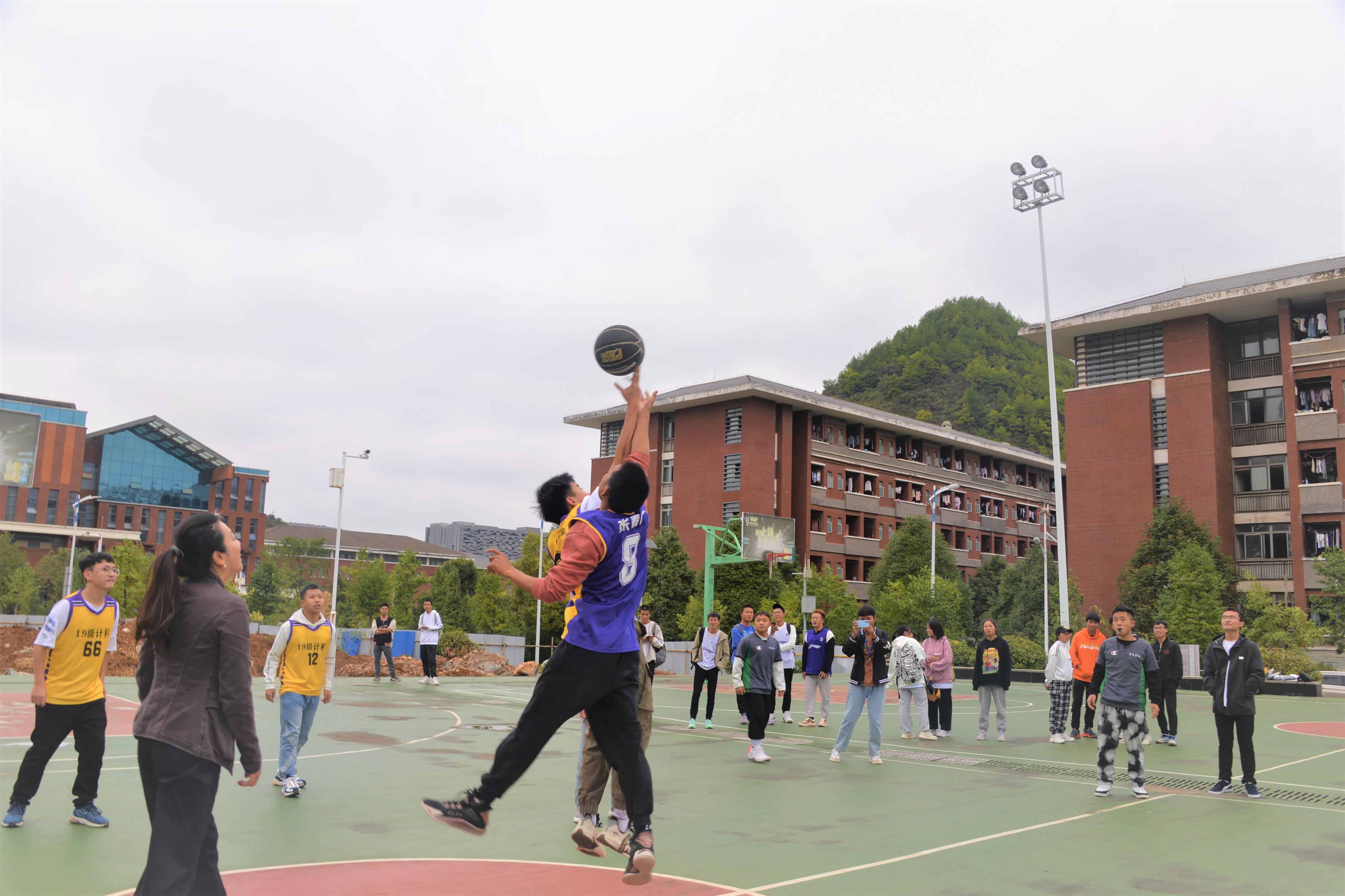 本网讯:(李杰 图文报道)为了进一步丰富员工校园文化生活,增加员工之间的沟通和交流,营造一个积极健康、活泼向上的校园环境,增强员工体质,10月12日,3044永利集团2021年“迎新杯”篮球赛开幕式在体育馆对面的篮球场举行,信息公司党委书记卿春、党委副书记徐聚星、副经理刘文江、副经理梁敏、团委负责人李杰及各参赛队队员、裁判员参与此次活动。