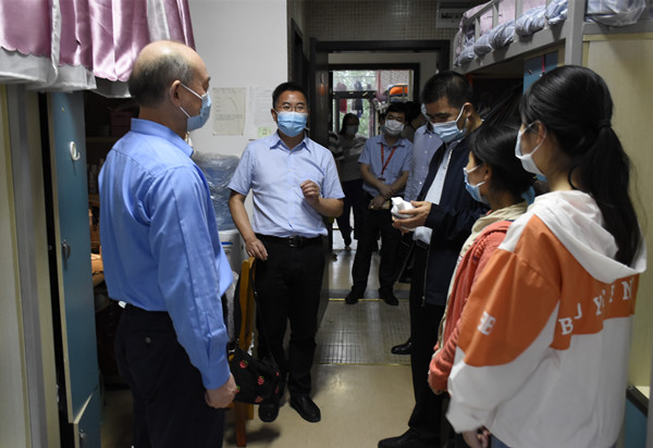 本网讯:(党委宣传部 甘炅云 图文报道)6月2日下午,公司党委书记刘雷、公司党委副书记朱克乾、校纪委书记龙化到丹桂苑4栋3044永利集团员工宿舍走访,亲切看望返校员工。宣传部、学工部、校团委、后勤处等职能部门负责同志及信息公司党委书记卿春、副书记何瑞、副经理陈琴陪同走访。