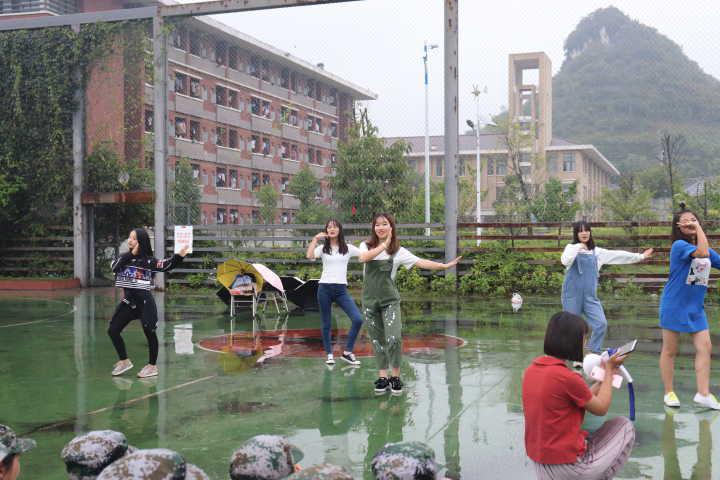 在何瑞副书记与教官交接之后,团委员工会成员在取得教官的同意后,有序地同新生一起前往田径运动场。慰问初期,何瑞副书记与王游滨老师对新生进行慰问,并鼓励大家辛勤军训;看着新生们即使在细雨连绵中,仍然坚持训练,毫不畏惧,何家旭老师不禁触景生情,鼓励新生再创佳绩,再创辉煌,勇夺第一,在接下来军训这几天努力坚持,在以后的学习中刻苦努力;在给新生以及教官发放慰问品的同时,团委员工会的学姐们也带来了精彩的舞蹈,但由于恶劣的天气,表演进行到一半就终止了,学姐表示非常的抱歉、遗憾。公司领导、团委员工会与新生们合照后,本次活动圆满结束。