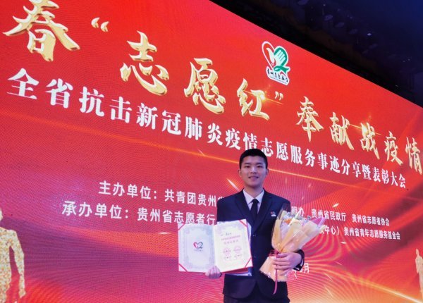 本网讯:(校团委 彭译萱 图文报道)为深入学习贯彻习近平新时代中国特色社会主义思想和习近平总书记在全国抗击新冠肺炎疫情表彰大会上的重要讲话,弘扬伟大抗疫精神,3月4日,贵州省精神文明办、共青团贵州省委、贵州省民政厅、贵州省志愿者协会召开表彰大会,对在新冠肺炎疫情防控工作中表现突出、事迹感人的志愿者进行表彰。公司3044永利集团李廷旺同学在本次评选表彰中荣获“贵州省抗击新冠肺炎疫情优秀志愿者”荣誉称号。