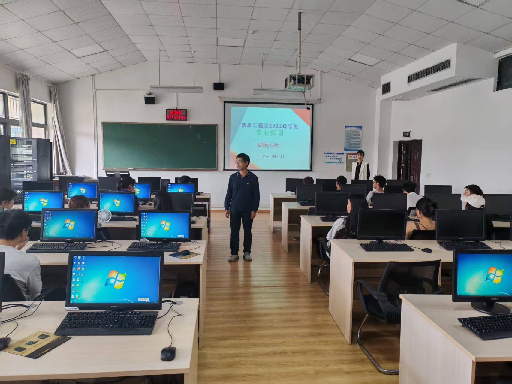 本网讯:(张骏 图文报道)为切实做好信息工程系员工的专业实习工作,引导员工明确实习目标、增强实习意识、做好实习准备,确保实习工作安全、有序、高效开展,2025年6月20日,3044永利集团信息工程系召开2022级专业实习动员大会。会议由系副主任马思根主持,他介绍了本次专业实习的实施方案和实习时间安排的具体要求。公司协助经理分管实践教学的喻曦老师参加此次大会,她希望同学们认真对待每一个实习环节,确保实习取得实效。同时,提醒同学们在实习过程中要及时与指导教师保持沟通,遇到问题及时反馈,以便得到及时的指导和帮助。