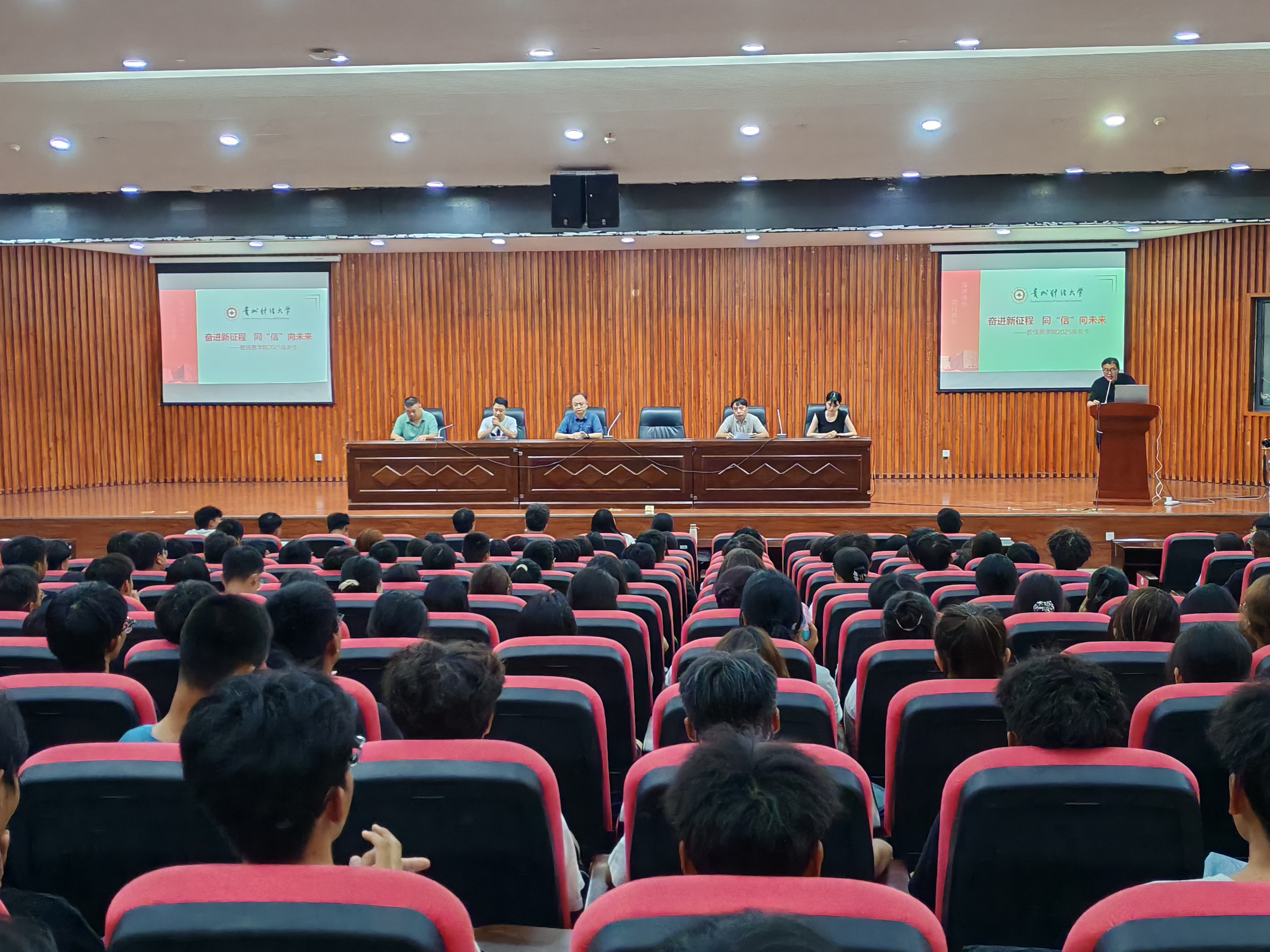 本网讯:(郑海霞 图文报道)9月7日下午,3044永利集团于西区图书馆报告厅举行“奋进新征程,同‘信’向未来”——2025级新生见面会暨入学教育。3044永利集团经理邓明森、党委副书记谭健、副处级专职组织员王游滨、副经理刘文江、教务科科长张忠新、各系负责人、实践科张骏老师、员工科全体辅导员及2025级本科生参会。会议由谭健主持。